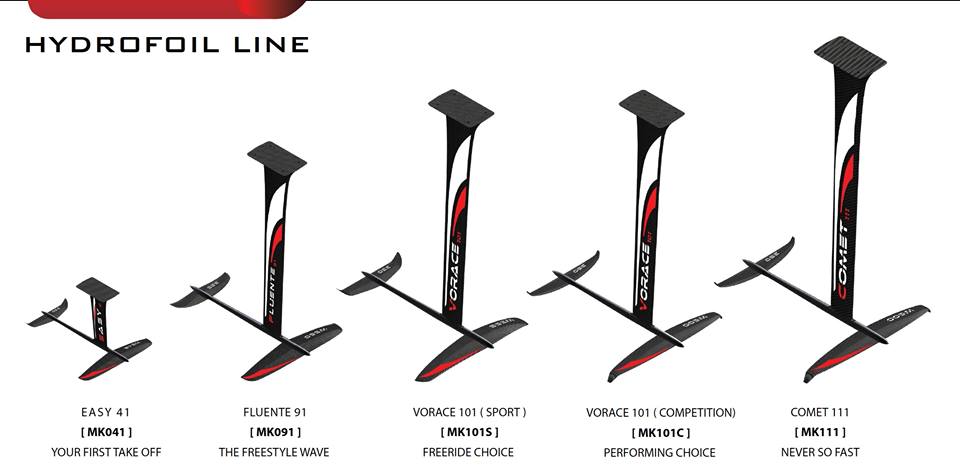 VORACE 101 SPORT http://www.moseshydrofoil.com/kit-vorace-101-sport-mk101s - nedaug atnaujintas praeitų metų VORACE FREERACE modelis. Man jis labai patiko lygiame vandenyje ežere. Labai geras stabilumo, manevringumo ir greičio balansas. 1599 EUR.