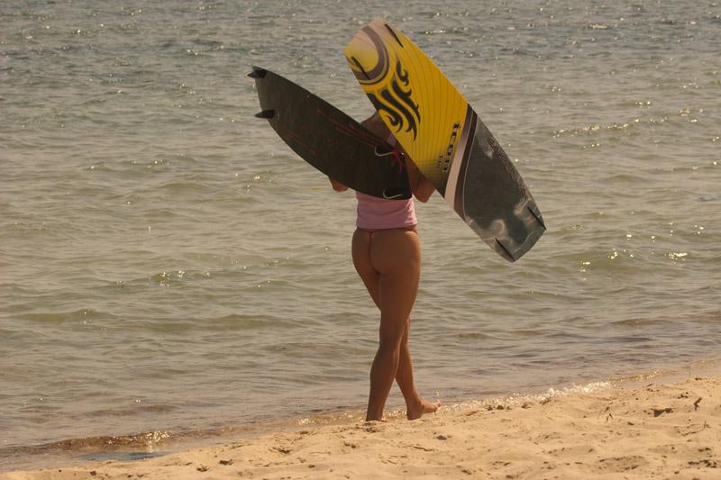 Ir dar, kai būna daugiau žmonių, pučiant side arba side-on shore’ui tai nėra taip aktualu, bet prie on-shore’o būna visiška žopa kai prie besimokančių kuriuos, kaip taisyklę, nuneša pavėjui prisideda pramokę (t.y. profai ar nepydarai) kurie važinėja palei pat krantą (gal užsipjaut nemoka). Išsigandę naujokai patampa visiškai nevaldomi ir nenuspėjami, ir į vandenį baisu lipt. O juk už jų nugarų plaukiot saugiau.