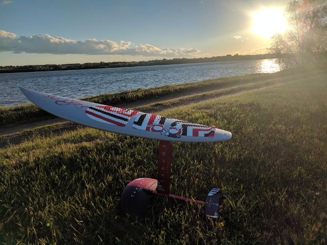Pagaliau pavyko išbandyti surf'į Takuma Concept V100 hidrofoil'ą, kurį kūrėjai pristato kaip universalų, tinkantį tiek aitvarams, tiek burlentėms, tiek ir surf'inimui. Nuo įprastų aitvarams skirtų hidrofoilų skiriasi kaip diena ir naktis. Priekinis sparnas milžiniškas savo plotu, storis gal kokie 5cm. Dėl to maksimalus greitis nedidelis kad ir kiek betrauktų aitvaras. Traukos irgi reikia daug, tikrai ne lengvam vėjui. Labai tinka esant stipriam vėjui. Kotas tik 60cm, todėl teko priprasti prie žemesnio skridimo. Į viršu kelia įspūdingai - priekinę koją reikia statyti kaip galime toliau į priekį, antraip labai sunku spausti nosį. Labai manevringas. Žodžiu, subalansuotas pažaboti bangos jėgą. Tikėkimės greitai pavyks sulaukti salygų išbandyti jūroje.