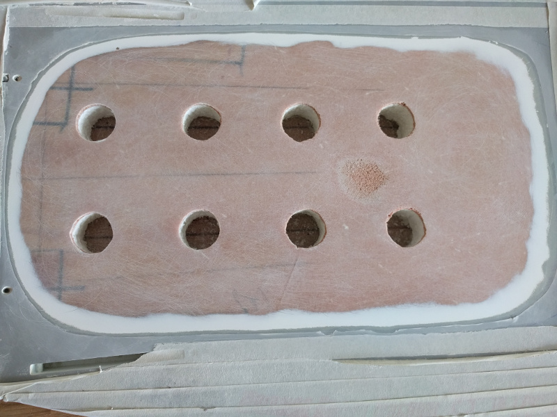 Ką veikti kai savaitgalį nepučia net hidrofoilui? Imam šitą Magnumą, gręžiam skyles nekiauriai iki denio, šlifuojam, pjaustom PVC strypą, pilam į skyles epoksidinę dervą su stiklo burbulais, įstatom PVC strypelius, pilam epoksidinę dervą ir klojam stiklo audinį, dedam formavimo plėvelę. Prispaudžiam. Laukiam. Liko nušveisti, nuglaistyti, nušveisti, nudažyti, išgręžti skyles ir varžtus parinkti. Kas rekomenduosit gerą glaistą, tvirtą ir lengvai apdirbamą?