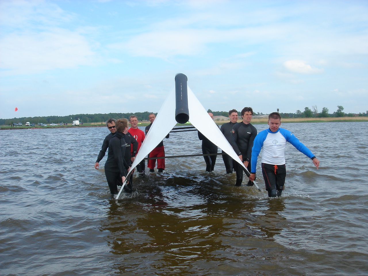 ir niekas nesuluzo, tik priputus vandens jis apsiverte ir priplauke truputi arciau kranto... manau chebryte nesnaus ir pasitvarkys iki kito savaitgalio, nebent zvejams ant valties stogo prireiks... :shock: