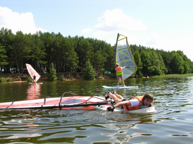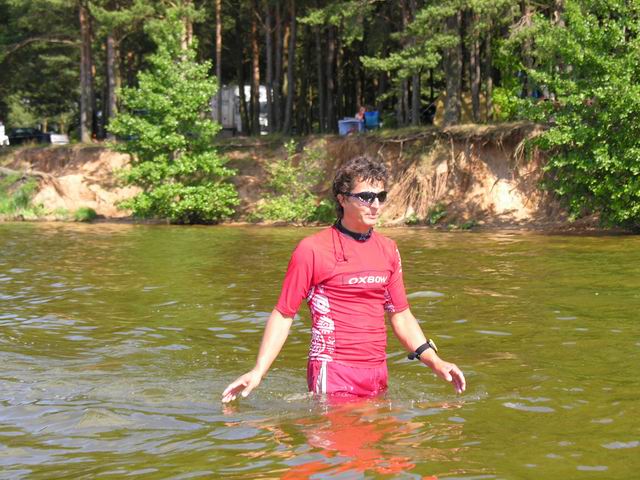 Vakar vyko mokyklele Trakuose. Vieta tikrai romantiska, stipri. Vanduo svarus ir skaidrus, siltas kaip arbata. Jau po pirmos dienos (3val) visi pradinukai pramoko suktis, pradeti plaukti, gryzti atgal. Progresas spartus. Akvatorijos uztenka mokyklai, vejo uzteko.