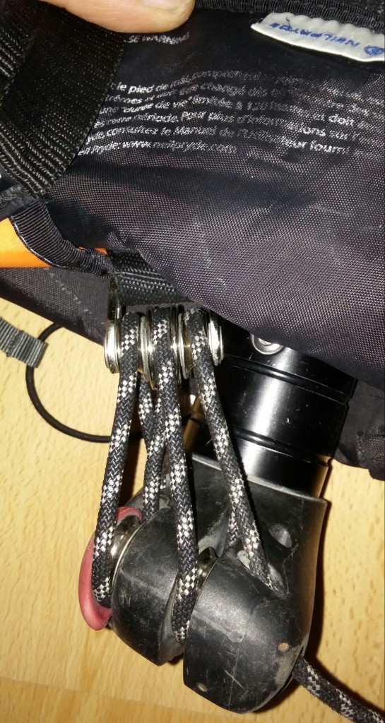 Man regis, Tavo burės įtempimo ritinėlis yra įmontuotas skersai. Jeigu burės ir prailgintuvo įtempimų ritinėlių ašys yra lygiagrečios - varstoma eilės tvarka ... pvz 0-1-1-2-2-3-3-fiksatorius. Jeigu parailgintuvas turi keturis ritinėlius, gali ir per juos prasukti.