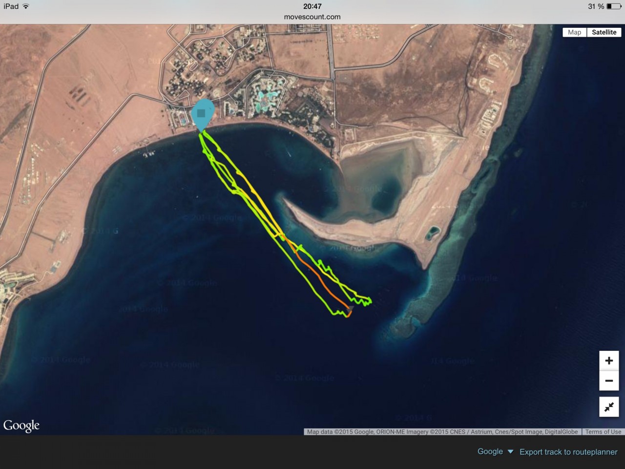 Taip, naudojau Suunto laikrody su GPS. Jei tiksliai, tai pagal prietaisa nuplaukta 127,3 km. o tai daug ar mazai? Kadangi kritinejau nuo lentos ir geriau Raudonosios juros vandeny gana gausei, daugiau nesigavo ir ne jegu nebebuvo
