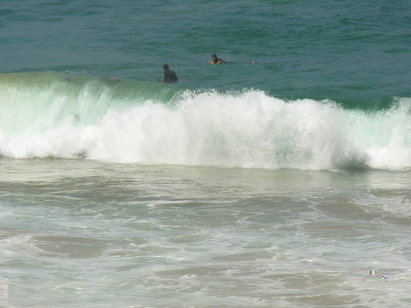 Bliamba kaip grazu!!! Saules persviestos tikros bangos. Sedziu, ziuriu, trajektorijas mintyse paisausi:) Vietiniai sokineja ir raidina tuose 100 metru nuo kranto ar kaip?