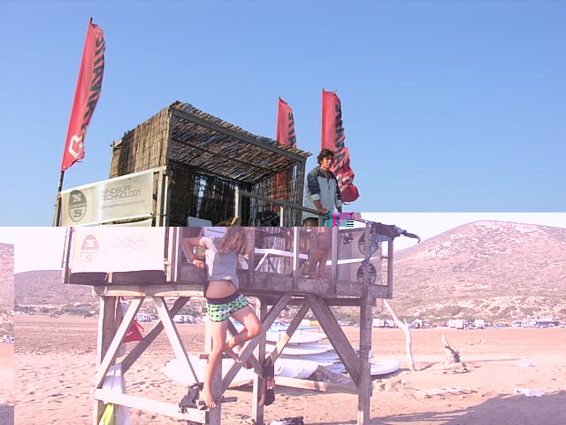 Uzdaryta dar viena liuksusine buriavimo savaite (08.08.09-08.08.16) Rodo saloje. Vejas visas 7 dienas, tinkamiausias nuo 14.00, kartais nuo 16.00 valandos iki kol saule nusileidzia. Mano naudojamos bures buvo tik 4.5 ir 5.3, lenta 95l RRD FSW, nors bangu puseje geriau butu buvusi mazesne 85l wave ar FSW. Atidroztos 3 dienos bangu puseje, 3 dienos flat'e, 1 diena paskirta pasizvalgymui po sala ir inventoriaus dziovinimui, pakavimui. Flat'as idealus freestylui ar siaip feeraidui, bangu puseje daugiau bump and jump, nors galima kiek paweivinti. Mums pora dienu bangos pietineje bangu spoto dalyje jau buvo visai nieko apie 1.5-2 metru, uztenkamo ilgio, gana tvarkingos su aiskiu periodu, tik nepatogumas, kad vejo ir bangu kryptis beveik ta pati - vejas siek tiek kampu beveik statmenai i kranta.