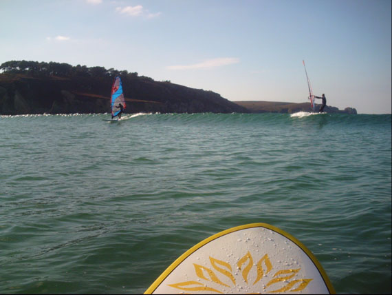 Crozone laprkičio 4....8 turėjo vykti "Uride Crêpes Party 2" arba tiksliau laisva wave foto ir video sesija. Deja gavosi tik Kona sesija :) Banga nors ir buvo, vėjo nesimato. Lygus veidrodinis vanduo ir raidinamos bangos su atgimstančiomis longboard burlentėmis. Išplaukimas be gliso ir visas veiksmas pasisukus į krantą. Stebina, kad nors pognozės pas mus rodė apie 10...14 šilumos, jie plaukia plonais hidrokostiumais su trumpomis rankovėmis.