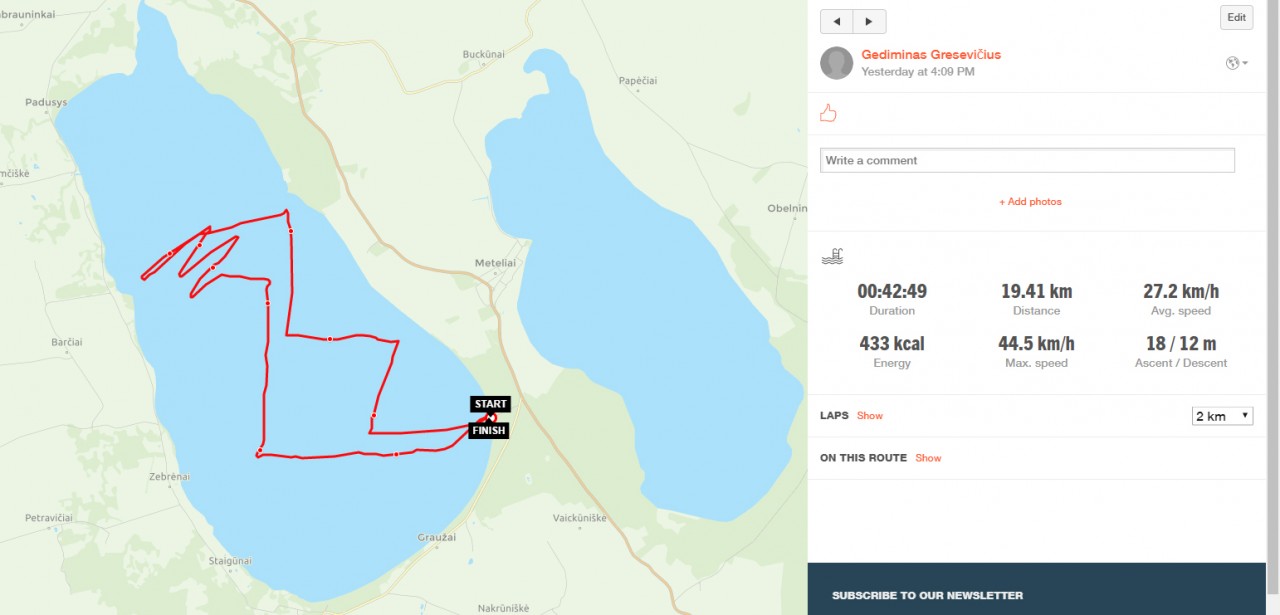SauliusG rašė:Iš kur žinai kur aš kaituoju ar buriuoju? Vidurio Lietuvoje aš daug metų gaudžiau vėją, kol įgūdžiai pradėjo leisti daugiau laiko praleisti vandenyje, o ne kelyje. Ir kuo ta vidurio Lietuva tokia įpatinga? Vakarų Lietuvoje yra jūra, tai tikrai įpatinga, bet kuo vidurio Lietuva? Jeigu įgūdžiai jau susiformavo - dar didesnį tobulėjimo džiaugsmą gali patirti ir baloje netoli namų.