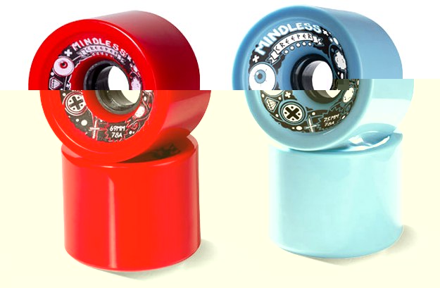 Aukščiausios kokybės Mindless longbordų lentos, ašys/važiuoklės, longbordų ratukai (įvairūs profiliai, spalvos, kietumas), waterproof guoliai, padukai, grip pad'ai.