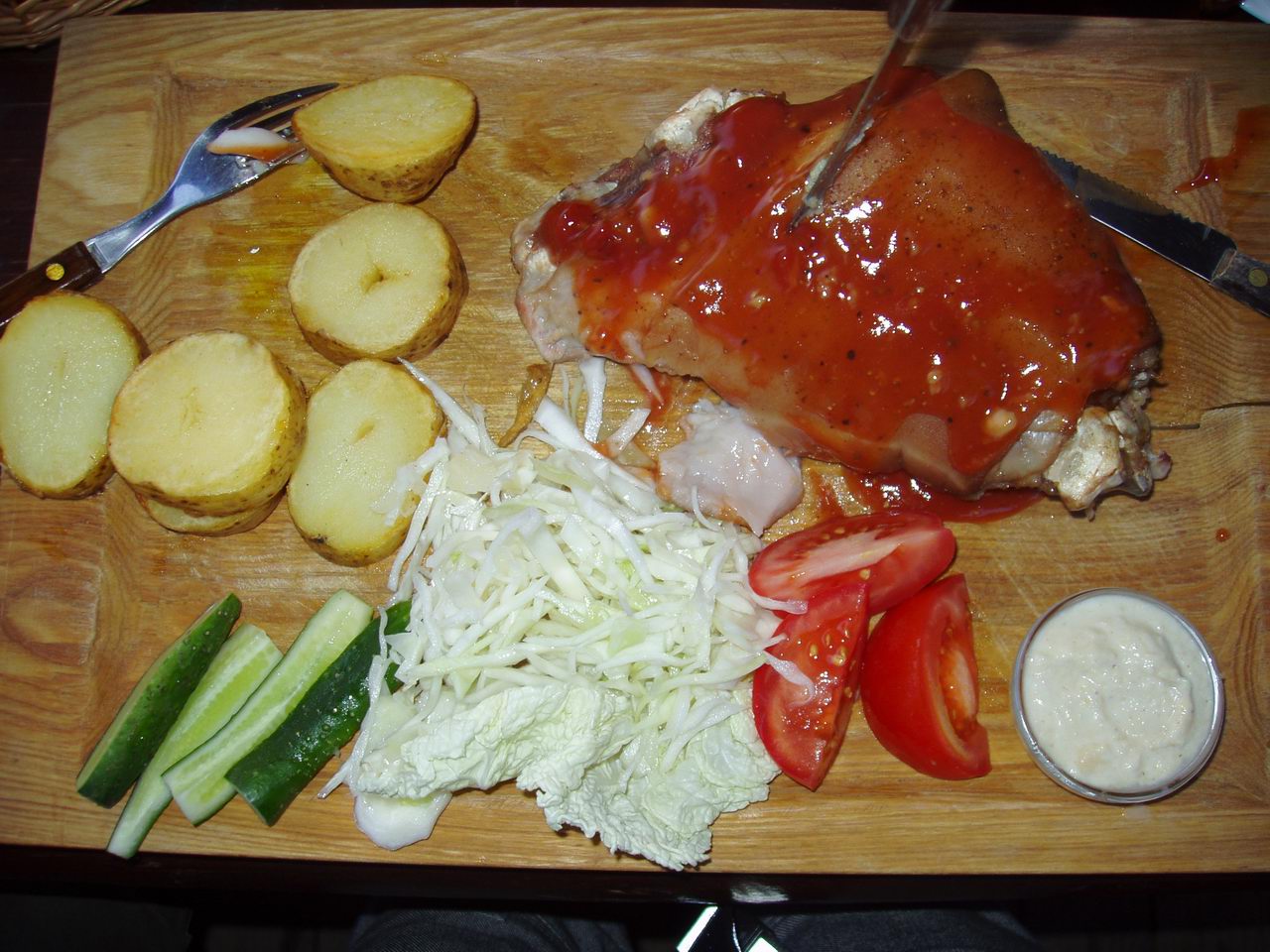 Vytasx rašė:Druskininkai, Kolonada - 25LT Kepta, o po to aluje virta. Riebalo nedaug. Uzisakem dvi bet padaveja ikalbejo "nedurniuot". Ciut dviese viena iveikem stenedami. Garnyras is svieziu kopustu-morku tushinio, skrudintu bulviu puseliu ir krienu padazo. Truko raugintu kopustu/ar agurkeliu. Sorry kad nuotraukoje truputi apgrauzta - nes po pirma karta gyvenime rinktu grybu nuo dviracio nenulipant buvau gerokai alkanas - neistveriau, o tik po to prisiminiau pareigia exkarku klubui.....