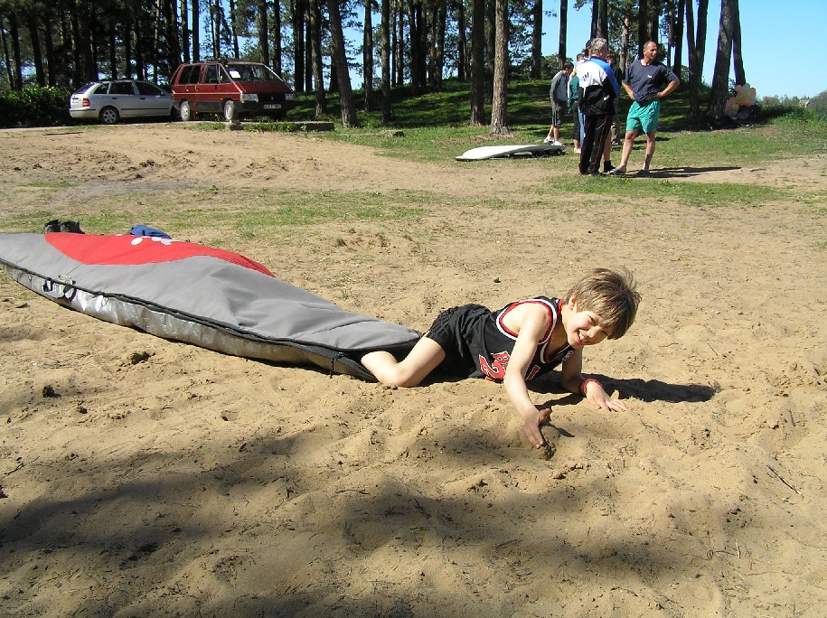 Buvo saunu sestadieni prisiminti gerus senus laikus, kai visi plaukdavome ant Raceboard'u. Ir visai nesvarbu yra vejo ar ne, irkluoji (pampinguoji)