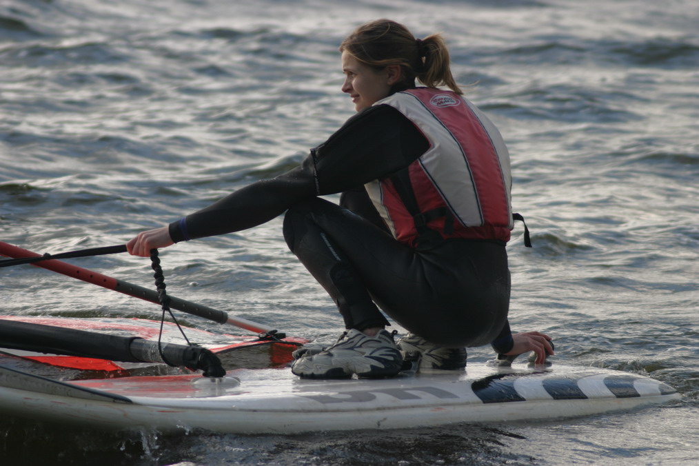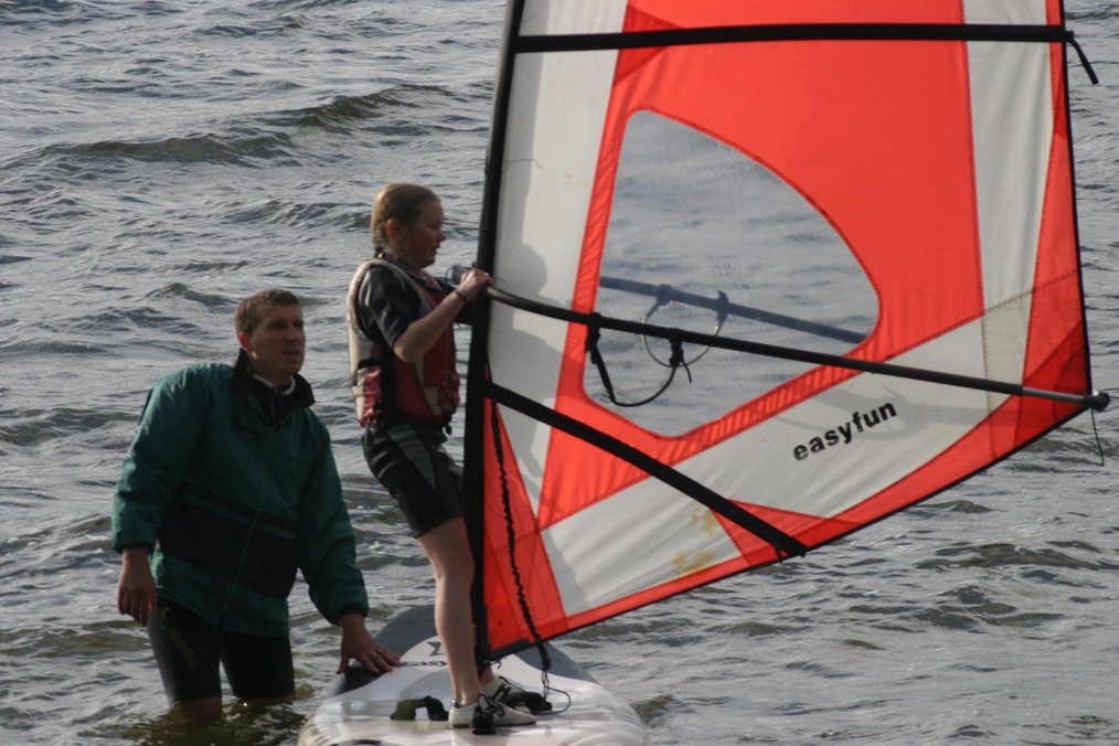 Pirma diena praėjo neblogai - supratom, kas yra nestabilus pagrindas po kojom, išsiaškinom, kuom skiriasi priekinė nuo dešinės ar galinė nuo kairės, įsitikinom, kad buriavimui geras oras įtakos nedaro :)