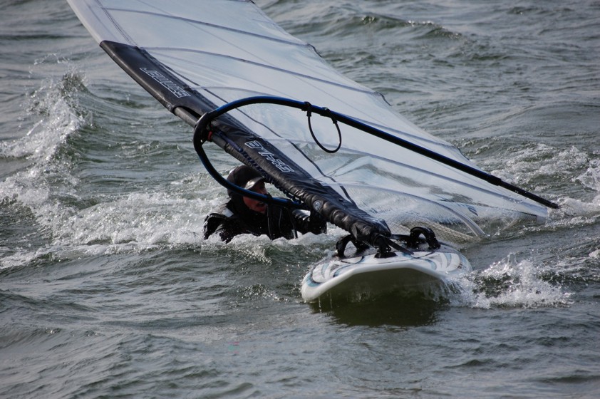 Atvarius atrode, kad vejo visai nedaug. Kolektyvas takelavosi dideles bures 7-8kv. Isleke grizo tokiom didelem akim ir puole takeluotis mazesnes... Is tiesu vejo buvo net labai normaliai. Islekiau su 6.2, akivaizdziai per daug. Deja netoli nulekiau. Chopas sioks toks, suoliukas, bure sau, lenta sau. Luzo sarnyras. Eilini karta pamoka. Apie tai daug kartu esu daug kam sakes, kad ypatingai didesnese balose netramvajinkit maratoniniais atstumais. Ypatingai tokios temperaturos vandenyje. Plastikines detales tokiam vandenyje tampa zymiai trapesnes ir bet kada gali suluzti net ir naujas daiktas.