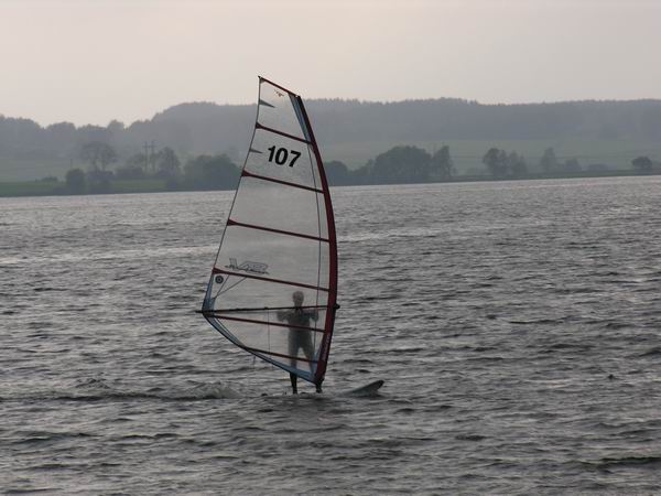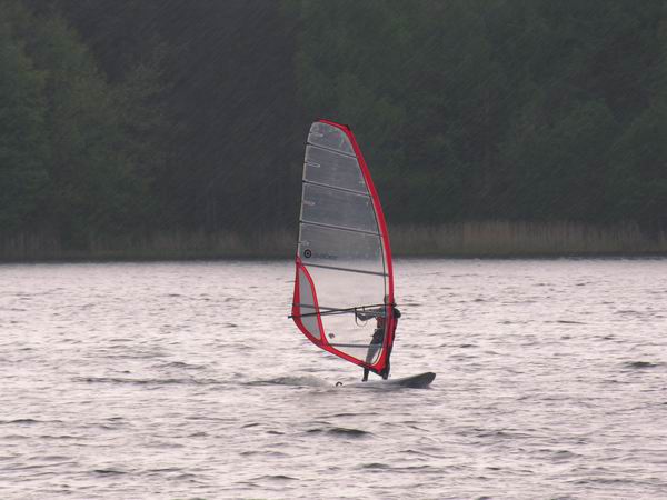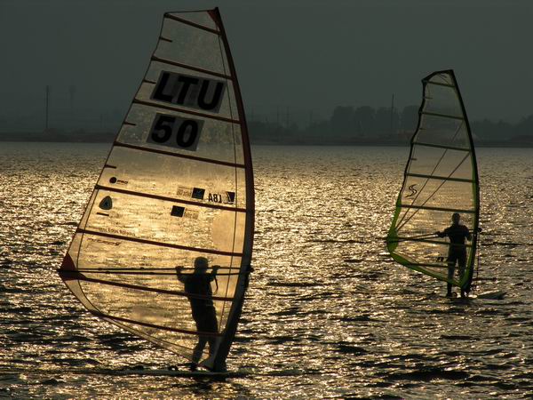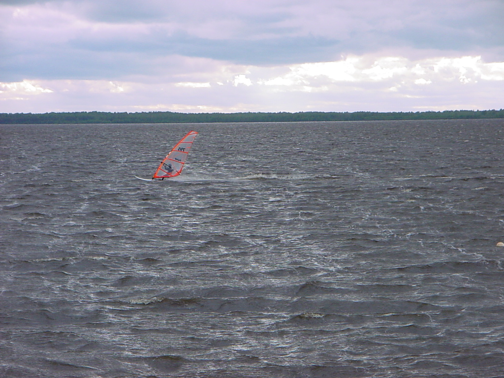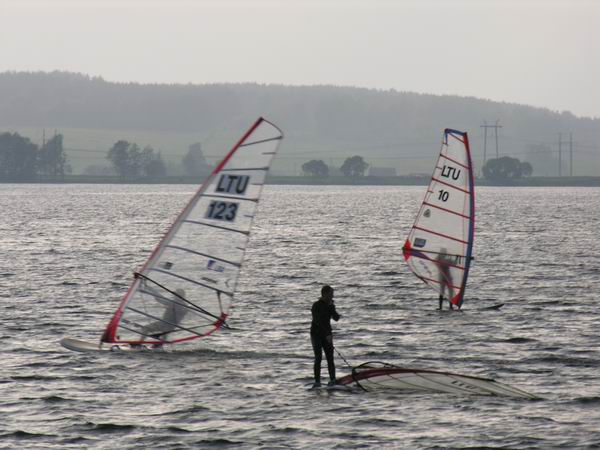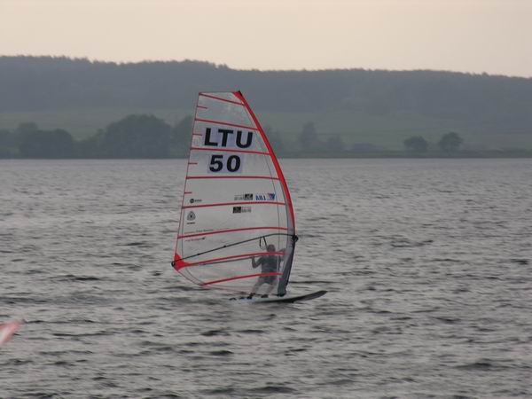 Deja, buvo 15 m/s ir daugiau. Plaukiau su 76 ltr.lenta. Tik burė kiek per didelė - 5.4 kv. Tai pastoviai pereboras. Artūrui ir 3.5 kv. kartais per daug būdavo.