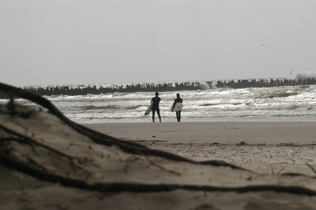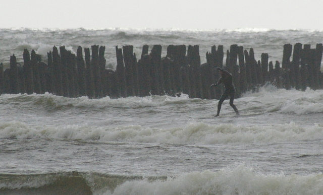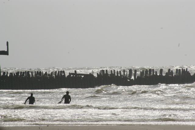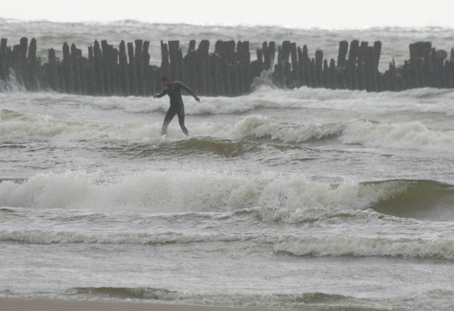 Pietvakariu bangos susiduria su srove kuri sukasi nuo pliazo pagal mola atgal i jura. O tada trys viename. Vejas Banga Srove. Ir nevarbu kad kazkokia lenku prognoze sako, kad banga bus tik 1,25-1,5m. Ji ten sprogsta. Na tiesa, eidam link kranto ji griuva del stipraus vejo, tada gal ir lieka tas 1,5m. Kas man yra per akis, o kai pritupiu ir virs galvos :D Sorry uz slenga. Anglisko nemoku, o ispaniskai neskamba.