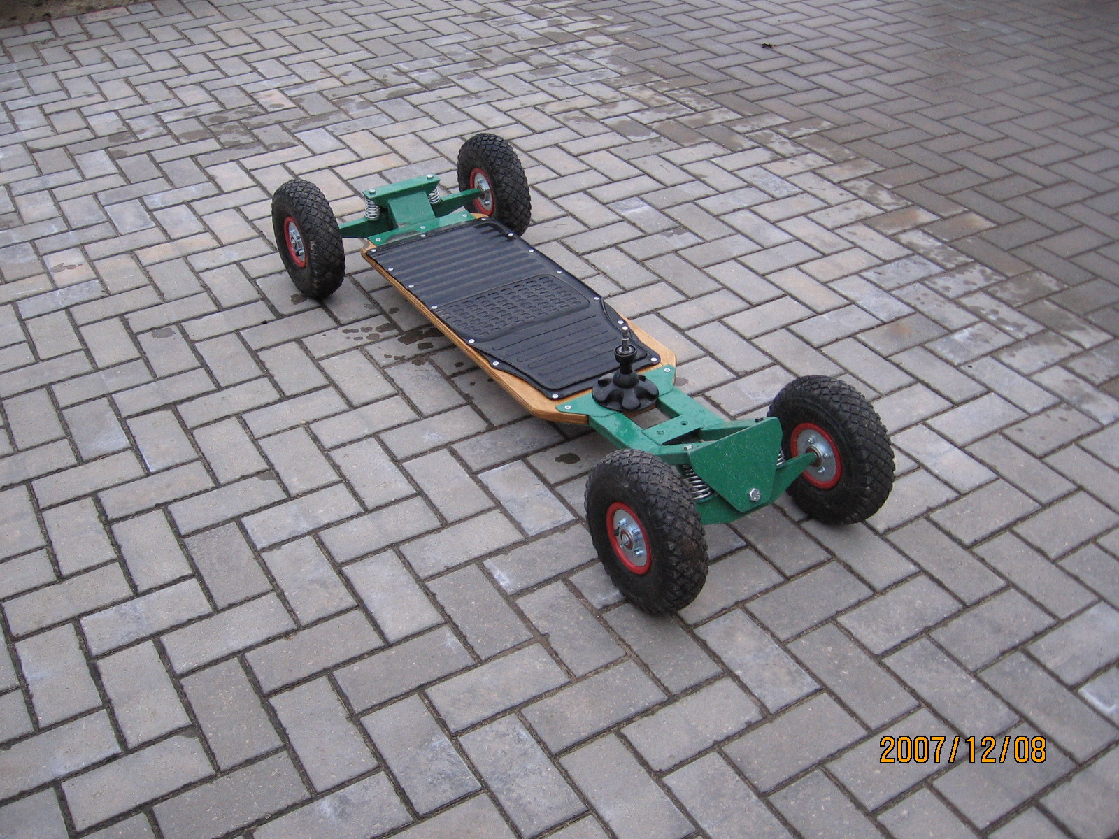 Pirmieji bandymai parode ir trūkumus. Reiks sustandinti lentos pakreipimą ,trūksta manevringumo,gal šarnyrą pastumti į priekį. Valdoma analogiškai kaip riedlentė- spaudžiant vieną ar kitą lentos kraštą. Dėl kainos sunku ką nors pasakyti - daug laisvalaikio :wink: