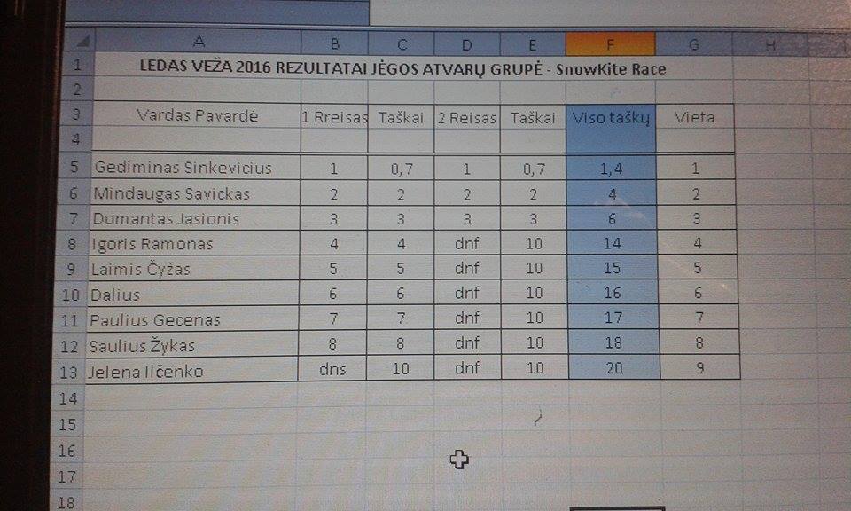 Susikloscius nepalnkioms ledrogems oro salygoms,organizatoriai ryzosi itraukti i varzybeles ir s jėgos aitvarus.Pataisyta varzybeliu instrukcija.